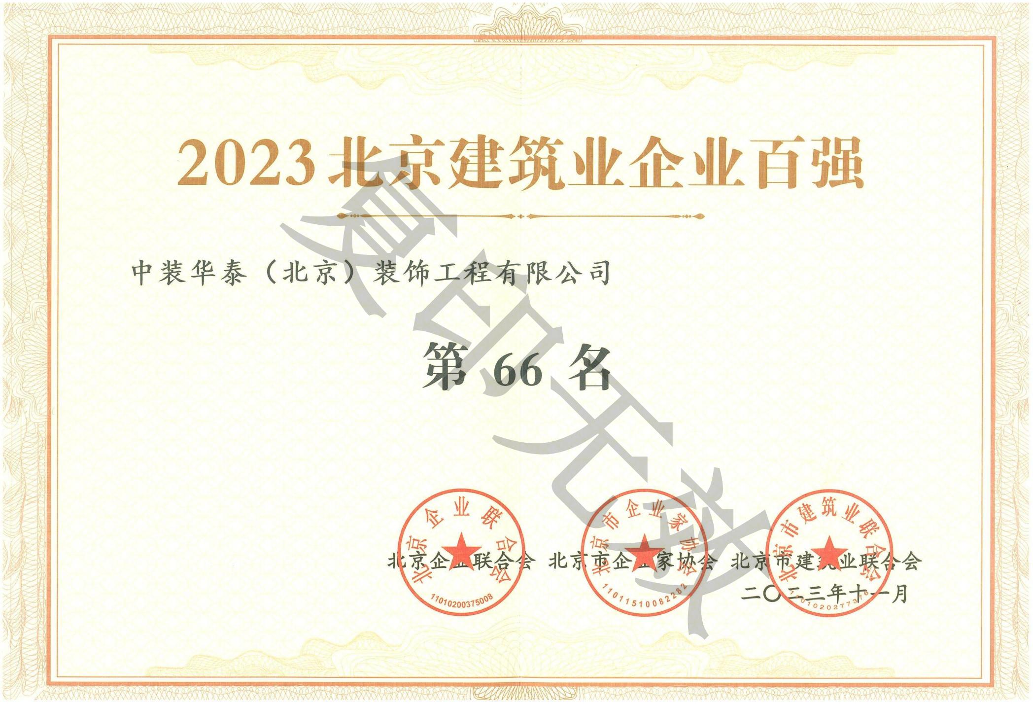 2023北京建筑业企业百强第66名